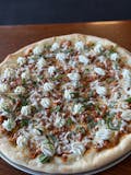 Grilled Chicken,romaine lettuce,caesar dressing on top of our delicious pizza crust with mozzarella cheese